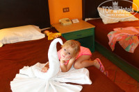 1) заселение приехали в отель около 16.00 заселили нас сразу (денег мы никаких не давали) с видом на лагуну в корпус В нам отвезли в номер вещи( носильщику мы дали 1$) когда зашли в номер нам сразу же все понравилось, в номере 2 кровати 1,5 спальные, 2 кресла, один диванчик раскладывающийся, журнальный столик, туалетный столик с зеркалом, телевизор и шкаф,в ванной есть фен, очень много туалетной бумаги кладут)))