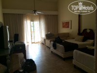 На ресеншн нас встретили с улыбками, и мы улыбались во всю. Персонал говорит на английском, испанском. Русский не знают, возможно лишь пару слов (Добрый вечер, доброе утро), но общаться было легко, английский учила в школе. Мы попросили разместить нас на последнем этаже, и не далеко от океана. Было 7 утра. Вообще заселение происходит в 15.00, но нас попросили прийти в 10.00 за карточками от номера, за что мы поблагодарили 10 долларами. Гид в автобусе предупредила нас, что принято оставлять чаевые в размере от 1 до 3 долларов. Нам одели браслеты, дали карточки от полотенец. И мы, чтоб не терять время отправились на пляж. В 10 мы получили карты от номера, работник отвез наши чемоданы к номеру, за что получил доллар и ушел радостный =) Также на ресепшн дают "паспорт" - это книжечка ,где есть карта отеля, описаны услуги все, режим работы баров и ресторанов и прочее.