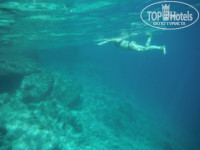 Море – Заходов в море много, можно с берега зайти, для детишек, а есть ещё и лесенки в глубину, где можно поплавать и посмотреть рыбок. На пляже есть душ, туалет, бар. Официант ходит приносит напитки. Всё достаточно продумано. Лежаков свободных много, но лучшие места уже с утра заняты.