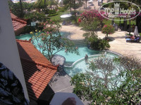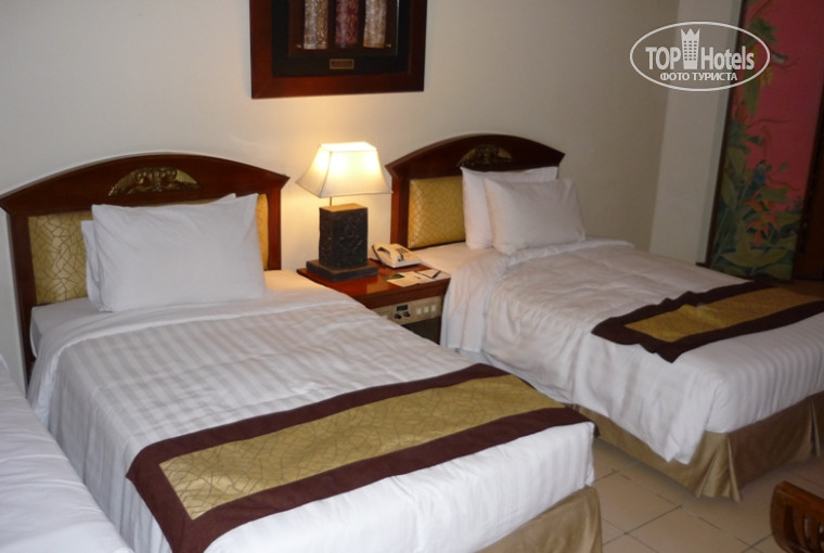 Привет всем! Отдыхали в этом отеле с 24.09.08 по 8.10.08 семьёй - я, жена и взрослая дочь. Впечатлений - масса! Самым неприятным моментом в этом путешествии для всех нас стал очень долгий перелёт (около 13 часов из Домодедово без посадок до Бали и обратно, с посадкой в Сингапуре, полёт занял ещё больше). Да ладно бы сам перелёт, но вот то, на чём мы летели, никак не назовёшь комфортабельным самолётом. Наш Боинг-747 не понравился нам сразу, как только мы его увидели. Обшарпанный нос, местами облезлая краска на фюзеляже… Впрочем, и в салоне вид у лайнера был не очень. Потёртая обшивка стен и кресел, на некоторых из которых были оторванные карманы, не особо тщательно подметённый пол салона. Да и тесновато как-то было мне уместиться, при вообщем-то не особо высоком росте 186 см ногами упирался в переднее сидение – и это в Боинге??? И если бы не Хеннеси, предусиотрительно приобретённый в дьюти-фри, бессонная ночь была бы обеспечена. Во время полёта предлагали DVD-проигрыватели за дополнительные 500 руб, всем остальным при помощи наушников послушать музыку или звук монитора, но самый прикол, что почти все они или совсем не работали, или работали только наполовину, то есть в одно ухо. Тёплых одеял и носков тоже на всех не хватило. Вообщем ТРАНСАЭРО жжёт! По прилёту в Денпасар нас встречала тропическая жара, и симпатичная девушка Катя – представительница Lanta-Tour. В наш отель нас должно было заехать 11 человек (три пары и мы). Но двое ребят куда-то пропали. В итоге, уставшие и невыспанные, мы прождали их в аэропорту 2,5 часа!!!, но так и не дождались! Как оказалось позже, по прилёту они сразу сели в такси и самостоятельно уехали в отель, а мы, как идиоты, стояли и ждали. Наконец, нас погрузили в микроавтобус и повезли в отель. Первое, что поразило на улицах – это очень интенсивное левостороннее движение за счёт огромного количества мототехники. Столько мотоциклов, на которых ездят и стар, и млад, я нигде не видел. Дорога до отеля заняла около 30 минут. При въезде в отель, как и везде на Бали, наш автобус проверили приветливые охранники, и вот мы у входа в нашу гостиницу. Две девчушки в национальных костюмах обсыпали нас цветами, и мы под звуки местных музыкантов направились на ресепшн. Номер у нас был двухместный на троих с видом на океан. В номере три кровати, туалет, ванная, душевая кабина, шкаф с встроенным сейфом, 2 журнальных столика, 2 кресла, прикроватная тумбочка, тумба с минибаром и ТВ, кондёр, чайник, фен, ну и, конечно, балкон с 2-мя стульчиками, столиком и шикарным видом. Конечно, для троих взрослых номер маловат, но, учитывая то, что за третье место мы платили в 1,5 раза меньше, получили то, что хотели. Теперь о самом отеле. Он находится на курорте Танжунг-Беноа, в 25-ти минутах езды от аэропорта. Среди сети 4-х звёздочных отелей этого курорта Grand Mirage считается самым знаменитым. Во-первых, сам отель солидный 4-х этажный корпус, хоть и старой постройки, но в хорошем состоянии, с огромным красивейшим садом и множеством водопадов, самый большой из них находится прямо внутри отеля, там же пруд с многочисленными вечноголодными красными рыбинами, которых мы каждый день подкармливали после завтрака. Кстати, НЕ советую вам брать ВВ (всё включено). Мы ограничились одним завтраком, и ничуть об этом не пожалели, т.к. сам завтрак получался настолько плотным (шведский стол), что мысли об обеде даже не воз
