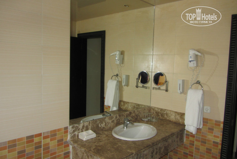 Номер большой. Огромный холл и остальное тоже. В номере есть все как написано фен, кондиционер, чайник, кружки, стаканы, воду конечно надо подождать немного пока нагреется, пара минут погоды не сделает. В номере действительно темно. Очень. Но я заметила, что так во многих отелях. Видимо, чтобы не сидели в номере, а гуляли где-то. Холодильник маленький и у нас в нем что-то то ли стухло, либо он сам стух. Если поставить туда даже стакан с водой, пить ее потом невозможно. И если не до конца его закрыть шумит. Пока были зимой пытались кондиционер включить, чтобы обогревал – не сработало . Шампунь и гель для душа не выдают.