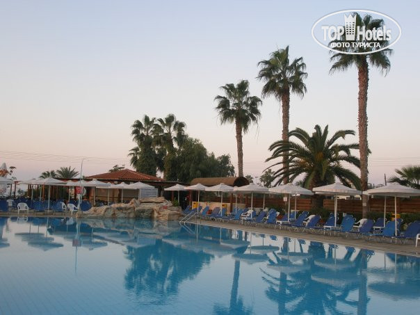 Питание неплохое по качеству, но разнообразия почти никакого, каждый день одно и то же, на ужин пару блюд меняли каждый день, но в целом все одинаково. Официанты очень приветливые и обходительные. Днем есть какая-то анимация у бассейна для детей, музыка играет. В бассейне ни разу не купались, поэтому о его достоинствах и недостатках судить не могу. Море близко, небольшая бухточка, в которой купаются как минимум три близлежащих отеля, ну и кроме этого, конечно, много людей, пришедших из дальних отелей. Очень яркого впечатления бухта не производит, но море чистое, песчаное дно чередуется с водорослями. Заход плохой, какие-то непонятные плиты из песка, камни, ну и водоросли.)))) Но если проплыть до середины бухты, то там очень красивое песчаное дно, в некоторых местах можно стоять. Волн там нет, песочек на пляже чистенький, что нельзя сказать о пляже Nissi beach. Но если выбирать между этими двумя пляжами, то я выбрала бы бухту, там народу поменьше и как следствие почище. Территория у отеля очень небольшая, что характерно для всех Кипрских отелей. В целом отель оставил скорее положительное впечатление, чем наоборот, но все же советую ехать туда людям старше 30 лет, для них в первую очередь там и организуется отдых.