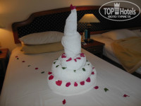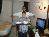 Отдельное спасибо хочу сказать нашему "горничному" Ахмеду. Очень приятный человек, исполнительный и добросовестный. Если и были какие-то промахи в его работе (в силу огромной загруженности), при любой просьбе всё будет быстро исправлено. Ежедневно крутил нам всякие "приятности" из текстиля. У сына был день рождения, "слепил" торт.