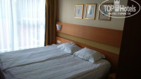 На ресепшн нас встретил русскоговорящий сотрудник Алексей, что очень приятно, но по русски говорят не все сотрудники. Попросили номер с видом во двор и потише, дали именно такой, за что большое спасибо. Рядом с отелем вплотную проходит оживленная и шумная дорога, просите номер с видом во двор. Номер сам понравился-уютный,чистый, отлично работает WIFI, подогреваются полы и в комнате и в ванной! Из косметики был шампунь, мыло и гель для душа. Минибар в номере есть, но он закрыт, если хотите им пользоваться как холодильником нужно оставить залог в 30 евро на ресепшн и вам дадут ключ. При выезде деньги вернут. У нас был поздний выезд и мы продляли номер с 12 до 19 это стоит 30 евро. Рядом с отелем супермаркет.