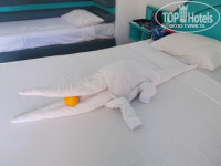 3. Номер стандартный, все в рабочем состоянии. По сравнению с январем уборка номера стала хуже, особенно это касается ванной комнаты. Постельное было чистое, полотенца же уже оставляют желать лучшего. К концу отдыха, видимо из-за наплыва постояльцев, полотенец вместо положенных трех стали оставлять по два. Но фигурки из полотенец нам делали почти каждый день.