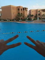 Отдыхали компанией 6 человек,по парам.многие были за границей не один раз.В Египте все впервые))По приезду заполнили бланк,нам надели браслеты,и отправили на обед.Заселение в 14,а мы заехали в час.Менеджер сказал,что ждать не нужно,сходите на обед,и номера будут готовы,мы попросили номера рядом,он улыбнулся и сказал,что все сделает.мы пришли с обеда нам выдали ключи и провели к нашему корпусу и номерам(все без дополнительных доплат),провожатый рассказал,что где находится,график работы,мы естественно не запомнили)))Номера нам дали в корпусе В16,с видом на детский аквапарк.рядом с отелем стройка,но она никак не мешает.Номер светлый, просторный,мебель новая,сантехника исправная,вода теплая всегда была.Есть чайник ,сейф,мини-бар с двумя бутылками воды,белье чистое,кровать удобная,телевизор с одним русскоязычным каналом.Персонал везде отзывчивый,гид от анекса нам не понравился,экскурсии брали у сотрудников дайвинг центра и на пляже.Аквапарк шикарный,катались каждый день.В бассейнах вода теплая.Питание разнообразное,было и мясо и рыба,гарнир ,овощи.Фруктов выбор небольшой, десерты мы в номера носили))персонал отзывчивый,проблем не было никаких.Пляж красивый,есть рыбки,тер-рия ухоженная,нас звали на аэробику и водное поло аниматоры Си Лайф,не смотря на то,что мы с другого отеля)Автобус курсировал каждые пол часа на пляж и с пляжа.Тер-рия нашего отеля большая,есть теннисный корт(освещение,ракетки-бесплатно),пинг понг,волейбол,бильярд-(1 или 2 дол).Анимация хорошая,на шоу ходили ,но не всегда. Все понравилось).По сравнению тер-рия Си клаб Aqua Park менее зеленая,чем тер-рия Си Лайф,Си Клаб и Си Гарден,но не менее ухаженная и красивая.Но отелю всего 2 года. Аля карты итальянский класс,индийский-не вкусно,остро.В общем все я отношу к плюсам. Минусов не нашла,я и не искала)))Все 6 человек остались довольны.Минус:отсутствие ванны,только душ
