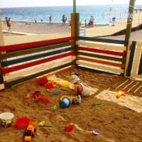 Отдыхали в данном отеле с ребёнком 1,5 годика с 13 по 27 сентября 2014. Отель очень красивый, большая ухоженная зелёная территория. Очень вкусное и качественное питание, изумительные десерты. Даже такого маленького ребёнка можно было накормить без проблем с общего стола (овощи и курица на пару, рис, макароны, все овощи и фрукты, сыры, супы). Море очень чистое, вода прозрачная, но галечный пляж оказался для нас минусом, малыш не мог ходить по гальке без спец.обуви, было больно ножки. Номер абсолютно стандартный, без изысков, но всё в хорошем состоянии. На пляже прекрасная крытая песочница для деток, это очень и очень удобно. Выходя из отеля можно прогуляться по длинной улочке с магазинчиками, там же есть аптека и супермаркет, где мы каждый день покупали детские творожки для сыночка. Смело могу порекомендовать этот отель.