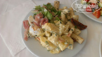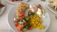 Питание в отеле нам очень понравилось: большое разнообразие было всегда. На любой вкус. Ребёнок, если бы не родительский контроль, конечно, целый день питался бы пиццей (изумительной, кстати, которую готовили прямо "онлайн"))), и мороженым. На завтраки: яичница, бекон, мюсли, орешки и сухофрукты, каши, всегда несколько видов йогуртов,несколько видов очень вкусного сыра, огромное количество вариантов варенья и джемов, блинчики (небольшая очередь за ними - 3-4 человека). Блинчики очень вкусные. Пирожки различные из слоёного теста. Чай, кофе, соки... и хлеб!!! Об этом хлебе можно слагать хвалебные песни! Очаровательные аппетитные булочки, ржаной хлеб, багетики...Фото прилагается)))