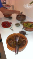 На обед всегда было несколько видов салатов, умопомрачительные вяленые помидоры в оливковом масле, свежие нарезанные овощи, чтобы собрать свой греческий салат, маслины, оливки, несколько видов паст из оливок, соусы. Из горячего всегда несколько видов гарниров, мясо - курица, очень нежная телятина, свинина. Запеканки овощные с мясом. Ну макароны, конечно же, были даже как-то раз пельмени, причём вкусные. Естественно картофель, чаще запечённый крупными дольками.