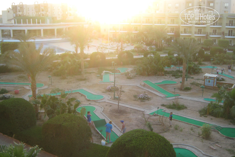 Около основного здания отеля, в котором находятся ресепшен, столовая и лобби-бар есть бассейн, но в нём почти не купаются. Далее мини гольф и амфитеатр. За амфитеатром расположен огромный бассейн, у которого проводится большинство аниматорских развлечений. За ним детский клуб и детский бассейн. Далее бассейн змейкой с двумя мостиками и бассейн с водными горками – их 4. Дальше волейбольная площадка, футбольное поле, место для боччи и конечно пляж и море.