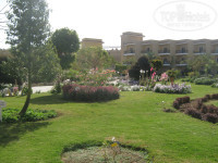 Гигантская, красивая, зелёная, ухоженная, завораживающая территория. Все деревья и кусты подстрижены, цветы на солнце переливаются разными красками и …волшебный запах…запах чистоты и свежести…после загруженного города машинами - это просто прелесть.