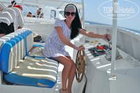 Территория отеля огромная, 2 отеля вместе, классные аквапарки, но! Купаться комфортно детям можно было только в одном основном бассейне, который подогреваемый, в остальных вода ледяная, мой не мог залезть даже. В high season, наверное, с этим по-лучше. Море обычное, очень сильные отливы после обеда, рыбок крайне мало. Поэтому решили съездить в морское путешествие на Paradise Island, с двумя остановками на рифах для снорклинга. Путевку брали не в отеле, а у одного паренька, про которого я прочитала в отзывах про отель и познакомилась заранее, за неделю до вылета. Зовут его Mido Bikham, можно найти ВКОНТАКТЕ, замечательный парень, организует различные поездки и ооооочень нам помог с интернетом, в первый же вечер привёз нам в отель симки водафоновские (звонки+моб. интернет) по крайне низкой цене, в маркетах возле отеля цена выше в 5!!! раз. Путевки на Paradise Island тоже взяли у него, со скидкой вышло дешевле гораздо, чем в отеле предлагают то же самое. Отличная экскурсия, все понравилось, еще и трансфер до причала и назад на личном авто, рекомендую этого приветливого паренька всем, добавляйтесь в друзья, обращайтесь насчет поездок.