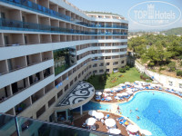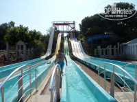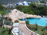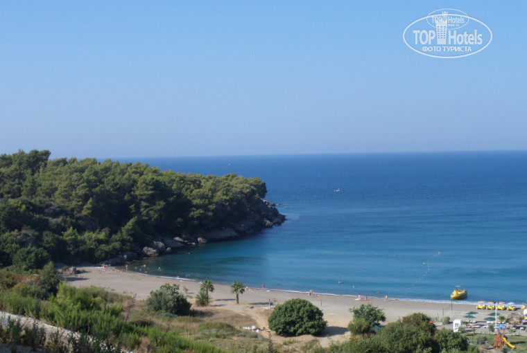 Отдыхали в отеле в августе 2014г. семьёй с двумя детьми – подростками 9 и 15 лет. Приехали в отель около 10-30 утра, заполнили документы. Заселение в отель после 14.00(как везде). Персонал вполне прилично говорит по-русски, но если не говорит, то хорошо понимают русско-английскую смесь, на ресепшине две русскоговорящие девушки, правда они до 17-00, но и потом язык жестов и плохой английский с русскими вставками помогает. Оставив вещи в специальной комнате, пошли осматриваться, так как в Турции не в первый раз, сразу переоделись для купания, продегустировали в холле отеля напитки-коктейли, дети естественно безалкогольные, там же варят вполне приличный кофе, полюбовались видом из окна и поняли, что нам уже здесь нравится. Вид отеля со стороны въезда прямо скажем так себе, но вид из окна на обратную сторону просто шикарный . Заселяться пришли пораньше, по опыту зная, что номера освобождаются до 12.00, главное, дождаться, чтобы в них убрались. И точно- нам выдали прекрасный номер на третьем этаже нового корпуса с видом на море, причем мы за это совершенно ничего не платили. Уже в 12.30 из номера мы пошли на обед. Номер отличный. Не тесный, приятный, все есть и все современное, даже телефон около унитаза (может кому и необходим). Балкон с креслами и столиком и ВИД с него ….так что за заселение 5 . Да, в номере оказался заблокирован сейф, вызвали специалиста, в 17.00,после предварительного звонка, пришел техник и все наладил. Территория отеля большая да плюс аквапарк, просто огромная. Кедры, каменистые склоны, море- красиво ОЧЕНЬ. Прозрачный лифт на пляж – здорово. Пляж от отеля удобный, шезлонгов, зонтиков хватает. Вход в море, конечно, не для маленьких детей, но нашим очень нравилось именно прыгать в воду и поэтому мы и выбрали отель с таким пляжем. Море до обеда отличное, чистое, рыбки плавают, а если их прикормить, то поплаваете вместе. Очки для плавания обязательно. Но вот после обеда в воде просто грязно: бутылки, стаканчики есть вещи и похуже. Под лестницами, действительно, шины, камни, мусор, для отеля такого класса навести там порядок, я считаю, необходимо. Но есть альтернатива-дикий пляж. 10 минут пешком от отеля, ходит и автобус, мы им правда, ни разу не пользовались. Ну как-то не интересно по расписанию. Вход в море - песок, вода прозрачная метров на 5-6, да, там нет шезлонгов, но из воды не хочется вылезать, а вдоль берега есть камни, можно там передохнуть. Аквапарк хороший, большой много приличных горок, но и людей, который сталкиваются друг с другом нечаянно и специально полно. Одного ребенка, даже взрослого, я бы не отпустила. Конечно, не без очередей, так как привозят МНОГО туристов с других отелей, но после 15-00 людей поменьше и 10-15 человек для русских не очередь. Зато ночью аквапарк свободен, вид на море потрясающий, проводят там и пенные дискотеки, но как-то слишком поздно, по-моему, в 24.00. Поэтому на них людей мало, все прилично пьяные, музыка для роботов. Аниматоры работали отлично. Часто дети не успевали везде попасть, просто совпадает стрельба и водное поло, дартс, можно пострелять из лука, есть волейбол, футбол, правда в футбол желающих поиграть не много, но взять мячик и попинать его можно легко. Проводятся занятия по аквааэробике, пилатесу, есть какая-то зарядка, но на нее мы не ходили. Вечером в 22.00 представление. Очень понравились акробаты, световое шоу и конкурс «мисте