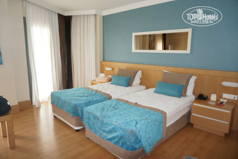 Отдыхали семьей в конце августа 2014, приехали в отель рано утром, заселили уже только в 12 дня, это конечно не порадовало, т.к. после перелета, ночь без сна, ребенок 3 годика, а также выселение, мы хотели доплатить и оставить за собой один из двух номеров до отъезда, но нам отказали, но это конечно только мои эмоции, я их тоже понимаю, т.к. в это время отель был переполнен, и все ждали в порядке очереди. Сервис хороший, питание замечательное, очень порадовало когда увидели детские йогурты, коктейли в упаковках для детей и даже пюрешки в баночках. Фруктов было много: виноград (красный, зеленый), арбузы, дыни, яблоки, нектарины, апельсины.... все очень сладкое, вкусное. По еде не было вообще претензий, а еще у них было очень вкусное мороженное) Уборка в номере на 4, часто забирали полотенца на замен забывали докладывать, приходилось горничных ловить в коридоре и просить полотенца, и не совсем всегда чисто мыли, но мыли каждый день) Территория красивая, порадовало также увидеть детские площадки, ребенок по вечерам от туда не выходил, очень ему нравилось, номера не новые, простенькие, но чистые. Анимация была каждый вечер, пляж хороший, заход в море ровный, в последний день снимали на пляжу шатер , т.к. номер нам не разрешили продлить, нужно было где-то с ребенком перекантовать до вечера, там я смогла ребенка спать уложить, а так же прямо туда нам и еду приносили, и чай, и мороженное, очень удобно). Мы правда не учли, что приехали в августе, там такая жара была, духота, и все простыли, т.к. с улицы заходили в отель, а там резких холод, но это конечно не в минус отеля,это для родителей которые со своими детишками планирует отдых в самый пик жары, в сентябре уже пик спадает, намного легче. 11 мая опять едим отдыхать, правда уже в Limak Atlantis De Luxe Hotel & Resort 5*. Хотелось бы чтобы нас заселили в замечательный просторный номер, с хорошим видом на море, т.к. приедим с 2-мя детьми, а им нужно движение, они любят побегать, попрыгать)))) Большое спасибо)))