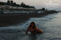 Пляж: Не знаю, как описать свой восторг от этого чудного пляжа, море потрясающее, мелкая галька, размытая почти до песка, правда рыбки кусаются, сначала очень испугалась)) Подругу ни разу не укусили. Рекомендую прогуляться в право, там 5* отели, есть очень красивый пирс. Шезлонгов всегда хватало, очень уютный пляж, главное, что есть минибар с безалкогольными напитками), душ, раздевалка и туалет)) Волейбольная площадка) Дорога от отеля до моря очень приятная, идти 5 минут медленным шагом. Кто хочет фотки на закате, тому нужно проснуться часов в 5 утра и ждать рассвета на берегу. Вечером солнышко садится за горы))