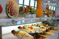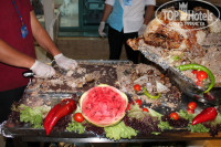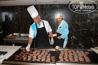 Ну и расскажу о питании. Коротко о меню: вкусно и разнообразно. А теперь что было важно лично для нас: В других отелях Турции мы сталкивались с тем, что кушать нужно было приходить только к открытию ресторана, иначе все места будут заняты и все будет съедено. В этом отеле расслабьтесь! Места есть всегда. Есть залы и с кондиционированием. есть и на террасе, есть и детские столики. Еда не заканчивается, за этим следят. Выпечка как всегда хороша, фрукты. Вынос барана тоже есть.