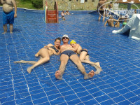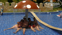В аквапарке больше 20 разных горок, есть отдельно детский бассейн с горками. Это просто супер!!! Потому что там воды взрослым по щиколотку, кое-где по колено, т.е. приходили с совсем маленькими ребятишками и не боясь, отпускали бродить по воде, лазить по маленьким горкам. Для родителей - находка, потому что рядом лежаки, и если ребёнок уже чуть самостоятельный - года 4 и больше, он там сам развлекается, а ты присматриваешь. А если совсем маленький - сядь под грибок, и "плавай" ребёнка.