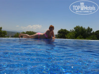 Территория отеля очень большая, зеленая и ухоженная. Везде постоянно убирают, поливают, подстригают деревья и газоны. На территории два больших бассейна, и еще один «инфинити» находится на крыше ресторана (18+, так как там можно загорать топлес), поэтому туда не пускали детей, а значит, когда хотелось покоя и умиротворения - можно подняться туда, вид там просто фантастический, вода чистейшая, дамы "топлес" нам не встретились, хотя иногда бывают, говорят.