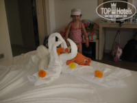 Уборка проводилась каждый день, иногда мы сами включали сигнал "не беспокоить", чтобы отдохнуть. Все расходники пополнялись. Лебедей крутили, при чём использовали детские игрушки, отчего дети приходили в восторг.