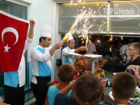 В отеле основной ресторан, османский и рыбный. Много баров, кондитерская. Питание разнообразное на любой вкус. Много мясного, рыбного, овощей, фруктов. Из фруктов – арбузы, дыни, слива, персики, абрикосы, виноград, ,бананы. Не всегда некоторые фрукты (например, сливы, абрикосы и персики) были спелыми, т.к. не сезон ещё. видимо. Очень красочно выносили основное блюдо дня в "турецкую ночь" - с национальной музыкой, выходил шеф-повар - целое действо. Много овощей, зелени - и всё такое вкусное, свежее, спелое. Посещали рыбный и османский рестораны. Напитки также на любой вкус. Бары работают с 10 утра до 12 ночи, с 12 ночи до 6 утра работает бар в отеле. Оценка по питанию – пятерка с плюсом.