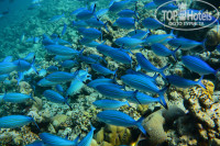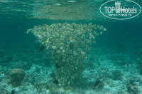 И так!!! На мальдивах первый раз, особо сравнивать не с чем. Тур на 10 ночей нам обошёлся в 190.000руб и размещение мы брали в экзотик виладж. Всем советую это размещение, там более хороший пляж, мельче песочек и риф лучше. Хочу обратить внимание, что песок не нагревается, дети могут спокойно бегать и не обжечься. У нас был номер 298, за каждым номером закреплены лежаки и беспокоиться не надо, что кто то их займёт. Обойдя весь остров я понял, что у нас самое лучшее размещение. Отель работает на всё включено, но питание мне показалось очень слабеньким (естественно с Турецким питанием даже сравнивать не буду, в Турции были в Риксосе Текирово и Гринпаласе), как говорится голодным не останешься. За время отдыха очень полюбили папаю. Но если хотите более вкусного питания, то можете взять размещение на ватер виллах за 500$ в сутки и там уже кормят намного лучше и вообще если есть лишние деньги, то конечно размещение в ватер вилах лучше чем на берегу. Уборка номера была ежедневной, убирали хорошо. Анимация никакая, можно сказать что её практически нет, каждый вечер живая музыка, какие то конкурсы проводили в виде крабовые бега и ещё что. Мы особо не почещали вечернюю анимацию. Рядом с нашим момером был мини бар, там и тусили. В фитнес не ходили, но я играл в настольный теннис, рекомендую взять с собой ракетку и мячи, т.к. ракетки очень плохие и мячи совсем от стола не отскакивают. Одним словом очень спокойный отдых. Писать особо нечего, но отдых очень понравился. Чистейшая вода, хороший домашний риф (видел скатов, мурен, актинии с рыбками клоуны, рифовую акулу, черепаху и т.д.), не передаваемые ощущения, когда вы с трубкой плывёте по мелководью и доплываете до стены рифа и начинается резкая глубина, мне было жудковато, но интересно особенно когда на тебя выплывает скат и ты дёру обратно на молководье. вода+30 вот всё что мне нужно было для хорошего отдыха. Остались очень довольны. Если будут вопросы пишите, постараюсь ответить.