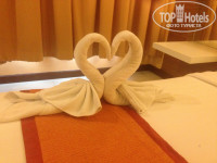 В комнате все стандартно, ничего лишнего, белье меняли каждый день, за 20 батт делали лебедей из полотенец. Кондер работал исправно. Халатов нет.