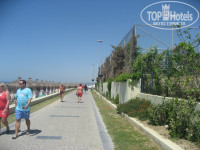 Отель находится не на первой линии , метров 300-400 до моря, но к пляжу идет вымощенная дорожка поэтому не трудно прогуляться после завтрака или обеда до моря.