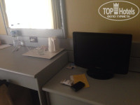 В номере superior присутствуют: кровати, столик, два стула, стол с зеркалом, небольшой пуфик, две прикроватные тумбы, тумба под телевизором, небольшой ЖК-телевизор, встроенный шкаф (в шкафу висят 6-8 вешалок), маленький холодильник, электрический чайник (весьма неплохой, кстати. Чистый, без накипи. К нему прилагался чайный набор: кофе в пакетиках, чай, сахар).