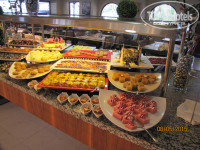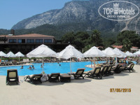 Отдыхал в мае 2015 год. Отель находится в чудесном по красоте месте Бельдиби, Кемер. Море, отель утопающий в зелени, за ним дорога и дальше высокие горы за которые по вечерам резко уходит солнце. Отвечу сразу на всех интересующий вопрос : "Как море?" Тем-ра воды около 20С, прохладная, но купаться вполне можно. Если жаркий день то даже очень вполне, если пасмурный то прохладно. Загруженность отеля далеко не полная, поэтому места на пляже были в любое время. Пляж надо заметить довольно большой и имеет несколько пирсов с которых удобно заходить в море. Была пенная дискотека днём на пляже. Бассейны так же вполне нормальные, чистые, вода разумеется уже без подогрева. Анимация развлекает в основном возле бассейна: водное поло, аэробика и т.п. Аниматоров много, но как то они не горят, видал я анимацию и получше. Питание вполне качественное, разнообразное и опасений не вызывает. Не спешите набирать полную тарелку то что бросается в глаза, обойдите всё не спеша и наверняка найдете что вам по душе. Берите по понемногу, но разное. По средам рыбный день в основном ресторане и они выносят на улицу еду и готовят её там же: раки, суши, мидии и т.п. в самом ресторане тоже много всего, заливные колечки осьминогов я оценил. По пятницам Турецкий вечер и так же выносят часть еды из основного ресторана и факельное шествие.