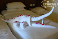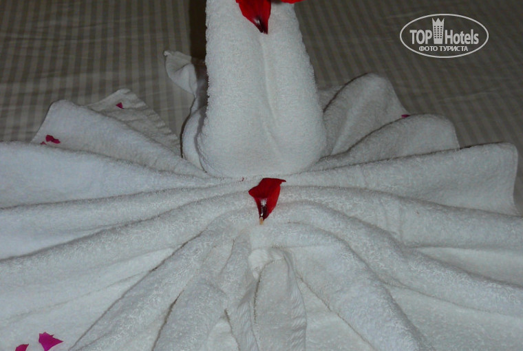 Номер: чистый, аккуратный, все работала, мебель новая. Убирали каждый день, за доллар из полотенец выкладывали фигурки. В номере есть чайник, чай, кофе и т.п. Нам дали номер с халатами, тапочками, пробниками и т.п., хотя по правилам отеля это привилегия второго посещения отеля...