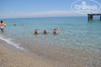 Единственное - пляж абсолютно не был готов к началу тур.сезона. Огромные камни , по ним очень трудно было ходить, заход в море тоже с каменюгами. Мы ходили купаться к волнорезу, там был небольшой уголок, где заход нормальный с мелкой галькой, но сильно по поводу пляжа не напрягались. Также не был собран пирс к началу сезона, думаю с пирсом было бы гораздо удобнее.