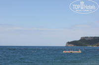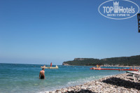 Пляж галечный, до него от отеля нужно еще пройтись минут 5, сам пляж небольшой, но рядом пляж 5* отеля, там есть понтон, туда тоже пускают. Море чистейшее!!!