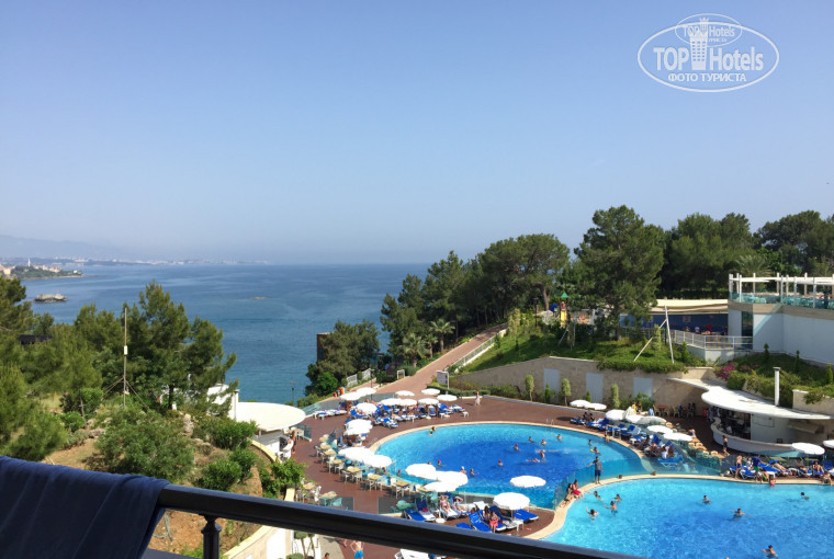 Всем привет. Наш отдых был с 12.05-19.05. Начну с заселения. Прибыли в отель часов в пять вечера, заселили сразу, с этим проблем не возникло, все быстро, народу было немного. Зашли в номер...сказать что мы были расстроены,ничего не сказать-вид был на стройку. Мягко говоря, мы были в шоке. Оставили чемодан, сразу пошли на ресепшен с просьбой поменять номер с видом на море. Нам отказали, сказали таких номеров нет, типа все заняты. Мы сказали что не согласны жить в таком номере, и настаиваем на нормальной комнате, ведь сейчас у них не сезон и 100 процентов отель не заселен. На что нам ответили, что у вас стандарт рум, она без вида на море. Тут уже мы взбесились, попросили позвать старшего, на что они ответили что это не возможно, он уже не на работе. Мы попросили позвонить ему, а нам в ответ- это не серьезная проблема, и попросили подождать до завтра, и они дадут нам нормальный номер. Естественно, ждать мы не собирались, и спросили куда можно пожаловаться),тут турок попросил нас подождать 5 минут. Мы присели в холле отеля и стали ждать... После чего он нас позвал, и сказал, что, якобы, только что, в эту минуту, освободился номер (невероятно!!!), и отправил нас его смотреть. Комната 1507 на первом этаже, как мы и просили, оказалась с чудесным видом на море, после просмотра вернулись на ресепшен, сказали что все устраивает, берем. Он нам намекнул на чаевые, мы его проигнорировали, забрали ключи и со спокойной душой пошли распаковываться. По номеру нареканий нет, все чисто, мебель новая, в общем номер на отлично. По еде, скажу так, не шик, в основном дают индейку, кстати вкусно приготовленную, говядину только в виде котлет, зелени и салатов в изобилии, супы на любителя. Рыбу давали редко, фруктов только яблоки, груши, грейпфрут и еще какие то местные фрукты. Напитки отдельная тема, они никакие. Кола, фанат и прочее очень отличаются от наших, не в лучшую сторону. Кофе тоже не очень вкусный. Сладости стандартные, в огромном количестве, правда, все на один вкус. Есть еще бар на пляже, там, кстати, можно самим собрать себе вкусный гамбургер, помимо этого фри, пицца и немного овощей. Перейдем к пляжу. Спуск к нему на лифте, но можно и пешком, правда спуск ооочень крутой, не советую. Заход в море с понтона, можно нырять, песочного захода нет. В 400 метрах от отеля есть дикий пляж, там кстати находится пляж отеля justiano, вот там заход нормальный, правда галька, хотя это куда лучше понтона) немного левее можно погулять по береговой линии вдоль скал, вид изумительный!! Анимация на среднем уровне, если нет привозных шоу, то скукота. Аквапарк на территории бесплатный, много горок, только будьте аккуратны, мы там перевернуться успели на закрытой горке) А теперь об отеле в целом. Очень много турок, немцев и конечно же русских. Если вы едете с детьми будьте готовы к тому, что в номерах все слышно, что делают ваши соседи сверху , топают, хлопают дверьми, открывают балкон..Хоть мы и ложились не рано, всё равно находились те, кто сидели у бассейнов до утра, орали, пели песни, иногда это очень раздражало, при чём, никто им не делал замечания, отель ведь молодежный. И еще один нюанс, в субботу приехали местные школьники и студенты, человек 100.... Это был ад, в столовой, на пляже, они были везде. Вести себя абсолютно не умеют. Об этом нас не предупреждали. Чуть не забыла! Ранний завтрак это что- то.. Четверть апельсина, булка стара