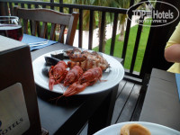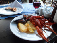 2.) Питание. По пятницам морская тема, раки,мидии,креветки,суши,осминоги,кальмары,короче вкусняшки всякие,морепродукты это моя слабость,поэтому это был мой самый любимый вечер))). Из мяса в основном курица и индейка, проскакивала также телятина. В турецкую ночь давали баранину, я к мясу отношусь "без восторга" поэтому не являюсь ценителем мясных деликатесов. Вроде индейка самая вкусная, курица суховатая, а баранина мне вообще как то не по вкусу пришлась,телятина классная. Мой супруг кушал с аппетитом. Помидоры черри там вкуснейшие, очень много овощей,зелени,картошка разных видов,макароны,рис.Сыров там много разных видов, муж мой объедался просто,это для него был сырный рай. Салатики всякие, очень вкусный омлет делает на завтрак девушка,очередь там всегда большая,но очень быстро она справляется со всеми. Сладости это отдельная тема,я влюбилась в их пахлаву,я не сладкоежка...но пахлава просто волшебная. В остальном всякие булочки,тортики,пироженки,инжир,сухофрукты,тоже все вкусно. Фрукты - яблоки,груши,бананы,апельсины,грейпфруты по утрам. Что касается клубники,на всех ее не хватает,мы успели взять только раза два и то первые 6 дней...потом она была, но тазами ее брали наши соотечественники и ухватить,что то могли только,пожалуй,либо везучие,либо наглые. Тоже самое касается шашлыка. Алкоголь. Все местного производства. Импортное платно. Сюда и отнесу наш поход в аля-карт...((((((((((....Извините,но рыбный не о чем. Просто никак. У мужа было день Рождение и на это число мы забронировали рыбный. После того как в основном ресторане прошел морской ужин,я вообще не поняла назначение их рыбного ресторана. В ресторан мы пошли в пятером, стол был накрыт...мы настроились на прекрасный вечер...и наше ожидание не оправдалось. На праздничном столе стояли 5 или 6 малюсеньких пиалочки...я не помню всего...но все же...на одной пиалочке 5 тюлечек,зелень,3 кусочка тоненько нарезанной красной рыбки,на другой маринованные осминожки чуть чуть,этого бы на меня не хватило (я 45кг), а нас 5 человек, 5 жаренных мидий, 5 жаренных креветочек, какое то овощное рагу (напоминает фарш из овощей...ничего не понятно).Потом подошел официант предложил выбрать основное блюдо...зачем то подал меню и сказал,что мы можем выбрать либо дораду, либо морского окуня(его через день дают в основном ресторане).Наш выбор пал на дарадо...было вкусно(но по моему мнению и мнению моего супруга,я дома ее готовлю вкуснее). Ребенок отказался от рыбы,мы упросили официанта принести нам креветки в горшочке(...капец...народ у нас семечки крупнее, вообщем это было месиво из мелких креветок,мидий штучки 2...и большая креветка наверху)))))....все острое). Также принесли два салата в общих салатницах из помидор,огурцов и зелени.Затем нам предложили выбрать десерт вишневое что-то и халва вроде какая то...я откусила кусок десерта...и честно ушла...пошла от ресторана подальше,у меня было испорчено настроение,и я не хотела своим кислым лицом портить настроение окружающим. Официанты конечно очень внимательные,постоянно спрашивали на счет подлить ли выпить,культурные,красивые ,аккуратные...Про мексиканский ресторан тоже слышала отрицательные отзывы,но не была,не скажу...