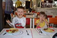 Для детей на улице есть специальный уголок, там отдельно стоит питание, мы не сразу его увидели. Там маленькие столики и телевизор с мультиками. А рядом могут кушать родители.