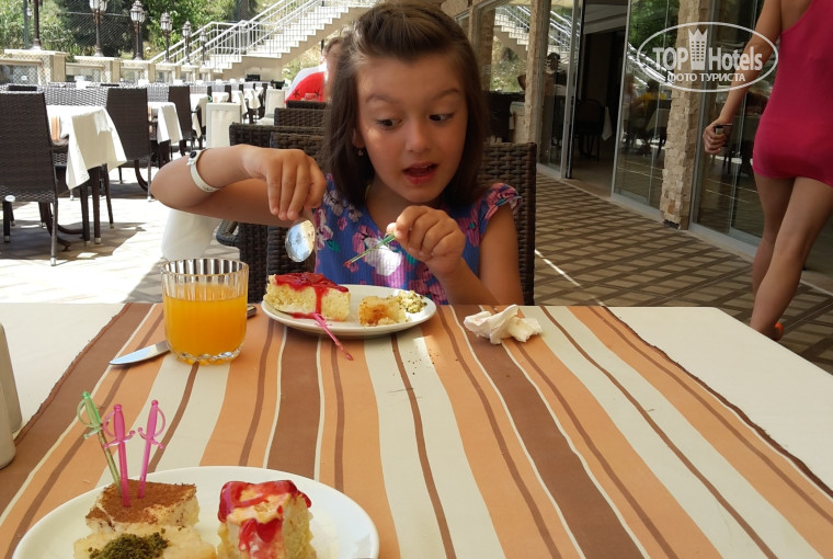 Мы отдыхали в отеле в мае 2015г, дни были жаркие, вечера и ночи прохладные, только 2дня капал дождик, но мы не унывали и ездили в эти дни в Аланию шопиться)). В отель приехали рано утром, нас вежливо встретили и сразу отправили завтракать, что оказалось очень кстати.