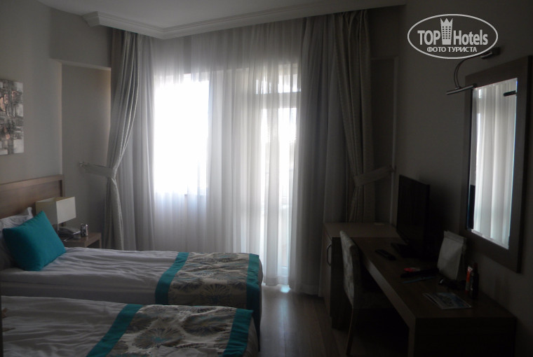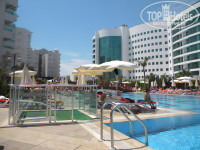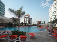 Отдыхали в Lara Family Club с 12.05 по 18.05.2015. Летели с оператором Sunmar, вылет по времни, встретили сразу, отель близко к аэропорту находится, поэтому быстро прибыли в отель. Прибыли около 17.00, ращместили сразу. Номер небольшой, но уютный, чистый, все работало, телевизор, холодильник, кондиционер, бесплатный сейф в номере, в холодильнике нас ждал целый ассортимент напитков - банок 8 газировки, 2 бутылки пива, 2 бутылки стеклянные минералки, питьевая вода. Санузел чистый, фен, шампунь, палочки и ваточки- все было, полотенца и постель были чистые. Какой минус по номеру - он дверью отделялся от соседнего номера, поэтому слышимость была просто феноменальная. И второй минус по обслуживанию - дня три вешали табличку с просьбой убрать номер, на 3й день это наконец-то случилось. И один раз убирали номер сами со сменой белья. Территория отеля небольшая, отель состоит из 4х копусов и бассейн во дворе, лежаков было много, всем хватало. Горки работали, была зона с маленьким бассейном и горками для детей. Возле бассейна был бар с напитками и едой, в холле отеля бар с напитками. Ресторан большой, есть столики на террасе, но если хотите занять понравившиеся мста, лечше приходить пораньше. Кормили отменно (на мой вкус), разнообразно, объелись уже на первом же ужине. Конечно поначалу пробовали все подряд, к 4 дню еду брали уже выборочно (кое-что слишком соленое или острое, кое-что слишком сладкое), но всегда выбор был очень хороший. Единственное завтраки однообразные, но обед и ужин - это да, каждый раз и курица, и говядина, и рыба, и индейка, разные гарниры, закуски, свежие овощи, выпечка, сладость, свжие фрукты - чего только не было, здорово! Пляж был в 5-7 минутах ходьбы, совсем рядом, на шаттле всего один раз прокатились. На пляже несколько рядов под зонтиками, а также лежаки с зонтиками на причале, и несколько рядов под тентами. Мы ходили пораньше, чтобы места поудобнее занять, а то часов в 10 уже все занято будет. Море прохладное, но купаться можно, главно зайти. Море было чистое, если без волн, купаться было одно удовольствие. Предлагали на пляже разные водные развленчения - водный мотоцикл, банан, полет на парашюте за катером (не знаю как правильно называется), экскурсии на катерах. Бар бы на причале и радом с пляжем был ресторан, ужинать и обедать можно было прямо на пляже. Жарили лепещки на пляже, но за ними очень длинные очереди были, каждый день вечером на пляже и у бассейна давали мороженое, очереди поменьше. Питьевая вода в изобиллии и на пляже и в отеле, так что не надо из отеля на пляж её тащить. А вот полотенца лучше получать в отеле, на пляже их не всегда хватало, правда в отеле их начинали давать с 9.00, так что тем, кто будет идти на пляж рано, полотенце или с венра чистое взять, или не сдавать накануне. О чем ещё рассказать... Отельный гид не приставал с экскурсиями, только документы взял. Рядом с отелем огромное количество магазинов ,все там можно купить, только торгуйтесь. Ездили на еженедельный субботний рынок (сесть на 7 автобус возле отеля, стоимость 1 дол или 1 евро и 2 лиры, водитель сам объявляет, когда остановка базар) - не впечатлил совсем, да, есть дешевая одежда, наваленная кучей, нужно рыться, качество соответствует цене, текстиля выбор вообще никакой. Фрукты там были недорогие. Но фрукты можно купить и магазине Migros (идти по правую руку от отеля), клибника даже чуть дешевле чем на 