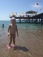 С погодой очень повезло- воздух 30-34гр, вода не знаю сколь но очень теплое море, с ребенком не вылезали..., пляж очень хороший-песок, все необходимое есть..есть платные беседки и бесплатные спальные места( как большие кровати под навесом), для дневного сна ребенка очень удобно,пляж в 5 мин ходьбы от отеля и шатл каждые 10 мин,вкуснейшие лепешки с начинками и айран,вода на каждом углу в неограниченном количестве...бар, ресторан, детская площадка, детская комната с няней