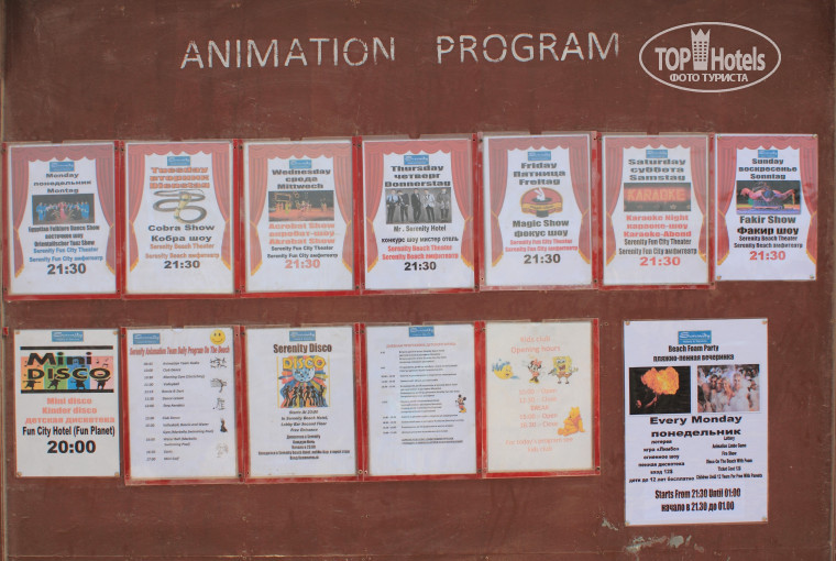 По вечерам бывали различные представления,я выложил фото с расписанием.Обратите только внимание,что некоторые вечерние представления проводятся в этом отеле,а некоторые-в "Фан сити"