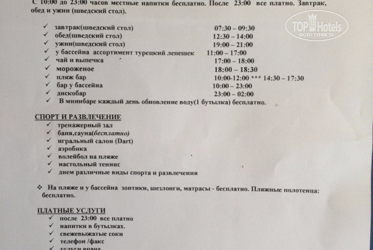 Добрый день. Сначала хотелось бы поблагодарить менеджера отеля Ферахима Туран, большое Вам спасибо за внимание и заботу о всех отдыхающих! Так как мы с супругой впервые путешествовали с маленькой дочкой (8 месяцев) и не знали как она перенесет поездку, я решил заранее позаботиться о том, чтобы по приезду в отель нас сразу разместили в номере, наш самолет прилетал рано утром и примерно в 10 часов мы должны были быть в отеле, а заселяют только в 14-00 часов. На сайте отеля Sirius 4* нашел адрес электронной почты и отправил письмо с просьбой разместить нас по-раньше. Ферахим ответил, что по возможности предоставит нам комнату, так как отдыхающих много. Мы прилетели 17 мая 2015 г. в Анталию самолетом авиакомпании Икар (Пегас) около 6-00 часов утра, автобусом Пегас-Туристик нас привезли в отель, расположенный в г. Текирова, рядом с горой Тахталы., примерно в 9-30 час. На ресепшен нас встретил администратор, сообщил, что заселение в 14-00 часов, свободных номеров нет, через минуту появился Ферахим, что-то прошептал администратору и вот оно чудо - свободная комната, еще раз спасибо Ферахим! Нас разместили в бунгало, рядом с бассейном, комната не большая, примерно 15 кв. м. - две кровати (2-спальная и 1-спальная), столик, холодильник, шкаф для одежды, телевизор (два российских канала), душевая кабина, фен. Сразу предупрежу, что в ванной есть все мыльно-рыльные принадлежности (даже презерватив и средства женской гигиены)), но нет зубной пасты и щетки, берите с собой либо можно купить в магазинчике через дорогу от отеля (маленький тюбик Сolgate 2$). Комната относительно чистая, уборка каждый день, давали бутыль питьевой воды 1,5 л., мини-бара нет. Территория отеля полностью выложена плиткой, на свободных местах растут лимоны, розы и какие-то кустики. В баре на территории отеля из спиртного предлагали пиво Efes, водка, вино белое и красное, из безалкогольного кола, спрайт, фанта и концентрированный напиток со вкусами вишни, персика, апельсина, клубники, в баре на пляже - пиво, кола, спрайт, минеральная вода. Повара и официанты отеля заслуживаю отдельной благодарности - еда разнообразная и вкусная, несколько сортов мяса, рыба, овощи, фрукты и сладости, много сладостей! Днем возле бара отеля пекли лепешки с сыром, а также давали мороженое. Бассейн большой, вода чистая, хлоркой не пахнет, лежаков всем всегда хватало, также как и на самом пляже. Молодцы аниматоры, ни минуты скучать не давали, проводили зарядку, аква аэробику, конкурсы, турниры, шоу, дискотеки и т.п., но строго до 23-00 часов. Наше бунгало стояло неподалеку от сцены, но шума большого не было, дочка спала как днем так и вечером спокойно, но некоторые отдыхающие жильцы просили переселить их в основной корпус из-за шума. Мы оставались в бунгало, потому что нам было удобно отдыхать около бассейна и периодически наблюдать за дочкой когда она спала. В отеле есть спортивный зал финская сауна, хамам, все бесплатно, за отдельную плату в 20$ делают массаж. Также есть небольшая детская площадка-веранда с аниматором. Расстояние от отеля до пляжа примерно 200 метров, там можно зацепить бесплатный Wi-Fi от соседних пятизвездочных отелей. Вдоль по улице, вправо от отеля расположены магазинчики с сувенирами, сладостями, кожаными изделиями, одеждой и т.д. По субботам в конце улицы организуется базарчик, работает с 10-00 час. до 17-00 час., продавцы торгуются лучше че