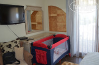 Кроватка-манеж в номере хорошая, не затасканная, не дырявая. В кроватке матрасик, пледик и подушка. Но у нас была кровать реально королевских размеров, поэтому спали втроём.