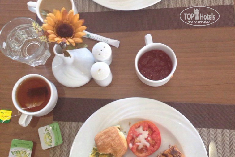 Приехали парами в разное время дня-нам дали страшный номер с раздельными кроватями (открыв унитаз,обнаружили огромного мертвого таракана,плавающего в воде),мотивируя тем,что номеров нет больше, а второй паре,приехавшей на час позже -с одной кроватью и намного лучше в корпусе номер 6.Мы три дня ходили и просили дать номер получше и пока дело не дошло до грубостей,нас бы продолжали кормить завтраками.Мальчики с ресепшена очень любят делать глупые лица и кривляться.