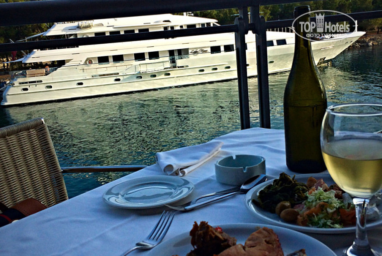 Устроили себе с мужем мини-отдых от детей! Пройдусь по самым важным моментам кратко: Питание нормальное (слышала недовольных русских в отеле по питанию, что мало рыбы и нет морепродуктов), но нас все устроило. Очень-очень понравилось кушать на балконе с видом на яхты)) Неплохое вино. Официанты носятся, за столик усаживают. По номеру, простой но в нем очень пахло канализацией, как и на этаже-неприятно. Аква территория с бассейнами отличная, красивая. Даже испытала некий восторг, когда вышла знакомиться с отелем. Пляж: вот тут нас устроило все! Вода прозрачная-слеза, пляж большой, шезлонгов много и САМОЕ ГЛАВНОЕ играет на весь пляж непринужденно приятная музыка с бич-бара! Мы даже из-за этого ложились специально на последнем ряду, чтоб музыку лучше слышать. Вот бич-бар нас (точнее меня) совсем не порадовал!!!! Мне вообще ничего не наливали! я подходила спрашивала и мне говорили нет! у нас была система все вкл., я говорю тогда что можно??? с удивлением. В ответ мне сок и вода. Шел муж! Ему все-все наливали и еще снеки впридачу давали. Познакомились с девушкой (нашей туристкой)-такая же история! и ей не наливали! На баре работали абсолютно неадекватные девочки! Мы вышли из этой ситуации, мой муж ходил за напитками нам. На баре у бассейна парни все наливали и делали различные коктейли) Вечерами после ужина катались в город на пароходике, очень понравилось. Много лавочек, таверн и развлекух. В целом отель хороший. Если бы была без мужа с подругами и детьми, однозначно пошла бы разбираться по поводу бармен-девушек на бич-баре.