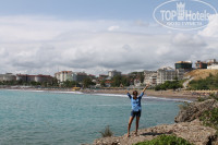 За пляж отельная твердая 5! Расположен в бухте, вода чистая, песок+мелкая галька. Вход в море хороший, пологий. Один день застали непогоду, был сильный дождь, на море принесло много травы и мелкого мусора, однако уже на следующий день вода была чистая, красивого бирюзового цвета. Тем, кто бывал в Мармарисе, придется по душе холмистость бухты с обилием хвойной растительности - небольшой хвойный оазис, тропинка оттуда выводит на скалистый берег,откуда открывается панорамный вид на Аланию (слева) и ряд отелей бухты (справа). Пляж чистый, с вечера убирается сотрудниками, дорожки моют,за чистотой следят.