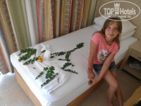 В отеле отдыхали с 20 по 27 мая, две семьи с детьми 5 и 7 лет. Вылетали из Самары, туроператор Интурист. Оценка принимающей стороне - отлично. Бахадыр - гид в этом отеле, ненавязчиво и подробно предоставил всю необходимую информацию, помог с решением личных вопросов (нужно было ребенка перевезти в другой отель), в любое время можно было к нему обратиться. Брали у него хаммам и диско на яхте "Викинг". Остались довольны. С размещением вопросов не возникло, поскольку в отель приехали после 13.00. Очень милая гестрелейшн, также на ресепшн есть русскоязычная девушка Алина. К нашему приятному удивлению получили фэмили вместо оплаченного стандарта. Номер 5210 с видом на бассейн с горками, где проходит анимация. В целом впечатление от отеля отличное: дружелюбный персонал, очень вкусная и достаточно разнообразная еда, выбор алкоголя небольшой, но качество хорошее. Пляж - шикарный, вход удобный и для детей. Гулять можно по всей полосе. Полотенца - бесплатно без депозита, зонтиков с утра нет, но их приносит работник пляжа, как только попросите. Какое - то нереальное ощущение, что нет русских - действительно отдыхаешь. Были некоторые проблемы с мини-диско и мини-клубом поначалу у детей, но потом привыкли и веселились под немецкие песенки. По поводу анимации - она действительно софт, но развлечься можно. Раз в неделю - турецкая и ночь, и еще похожий вечер, караоке и дискотека. По субботам с аниматорами можно выехать на диско в Сиде и Аланию. Вечером можно дойти до базара Алара, посидеть в кафешке, покурить кальян. Каждый найдет такой отдых, какой ему нужно. В Турции в 5й раз, но впервые хочется вернуться ИМЕННО в этот отель. За что очень благодарны персоналу отеля))) И хотелось бы добавить про шоппинг. С целью сэкономить 8 евро за проезд в Аланию и обратно, взяли бесплатную экскурсию у гида. Там обязательно посещение магазина кожи, затем ювелирного и затем ТЦ. Интересовал только ТЦ, хотели закупиться в Вайкики. По дороге выяснили, что ТЦ находиться в Конаклы и смысла ехать в Аланию вообще не было. Для тех кто интересуется кожей, дубленками - торгуются хорошо, скидки до 80% от заявленной цены. Но мы просто прокатились по этим магазинам, ТЦ разочаровал, покупали там от безысходности. И попав в последний день на наш базар, вообще пожалели, что потратили столько времени на поездку. Все можно купить там, и дешевле! Так что рекомендую сходить вначале туда.