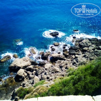 ПЛЯЖ: вот где рай для любителей релакса.Шум прибоя о скалы,малолюдно,почти нет деток,они в основном на пляже располагались чуть выше, на платформе с песочком.А ещё чуть выше бар и лифт,который избавлял от необходимости взбираться по наклонной к отелю.Платформы деревянные,поэтому берегите ноги от заноз.А так дерево не нагревается сильно,босиком комфортно дойти до лестницы и спуститься в прохладную глубину моря.Что хорошо,тк даже при шторме можно купаться ,не боясь волн.Ещё один плюс глубины,это её обитатели Рыбки) Их все кормили булками из бара,это целое шоу с плесками и выныриваниванием рыб)