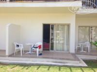 Номера. Само здание отеля видимо не новое. У нас была комната во 2 блоке, студия на первом этаже. Балкон Выходил на лужайку и бассейн. Мебель старенькая, но не сломана. Телевизор, есть русский канал. Мини кухня, холодильник. Номера убирают каждый день, моют посуду. Если оставляем сладкое на столе, сразу набегают муравьи. Что касается расположения конкретно нашего номера, то он нах рядом со сценой нашего отеля и через дорогу Олимпик. Очень шумно. Вечером караоке нашего отеля и дискотека олимпика.