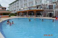Добрый день! Меня зовут Александра.Отдыхали вместе с мужем в этом отеле с 16.05.2015 до 26.05.2015. В Турции отдыхали впервые, хотелось сделать отдых бюджетным. Выбранное время оказалось очень удачным - погода в Турции была великолепная, было всегда солнечно и тепло, днем 30-33 градусов. Вода отличная, море было чистым почти весь отдых, только под конец отдыха немного штормило, и вода стала грязноватой.