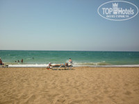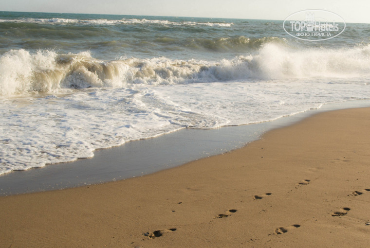 Пляж большой, песчаный. Есть навесы, лежаки. Лежаков всегда хватало всем. Море теплое, заход ровный. В основном были волны, что не могло не радовать ребенка. Только один раз во второй половине дня были большие волны - захватывающее зрелище! Погода больше была ветренная, но холодно не было, наоборот было свежо дышать, не было духоты.