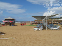 От пляжа в восторге, большой, песчаный, много лежаков. Идти до пляжа минут 5-7, есть маршрутка. Работает бар до 18.00 весь день там можно взять картофель фри, лепешки, овощные салаты, какие-то булочки, в очереди стоять не надо, приходишь и сразу все есть. Еще есть пляжный волейбол. Бассейн большой, есть детский и есть горки.